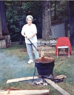 This was the first thing I noticed when we got out of the car. This woman was cooking apple butter outside with an open fire and a home made laddle. *S*