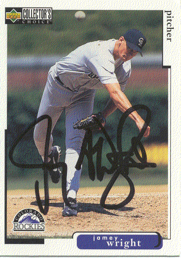 June 8-If you have not signed my guestbook please do sign it. Thanks. One success and one failure since last update. Failure from Dan Majerle C/O Heat. He returned cards unsigned, bumper sticker, and 2 pre-printed photos of Mourning and Riley. I don't think the Heat forward the players mail to the players anymore. This is my second failure like this this year. Has anyone had successes with the Heat this year or successes with any basketball players please E-mail me. Thanks. The success came from Jamey Wright C/O I think the Brewers ST. He signed 2/3 and returned the other card unsigned. A scan of Wright can be seen below. I also added a new link. There are some new get paid programs cashfiesta, all commuinty, and cashspace so please check them out if you have time.