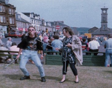 My Father Jackie Ann and Gemma in front of the waterfall in Dalmuir Park