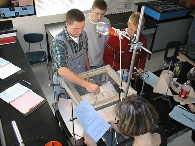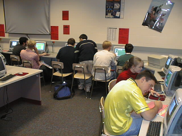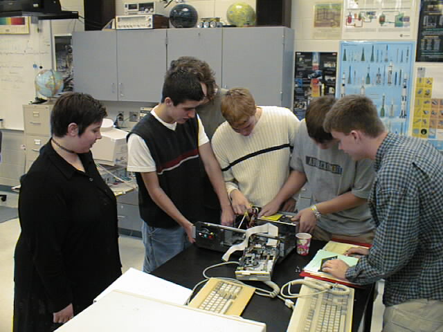 Dissecting computer "cadavers", Physics 2, class of 2000.
