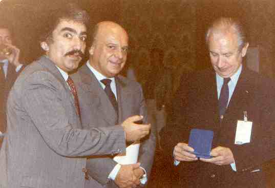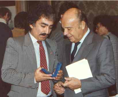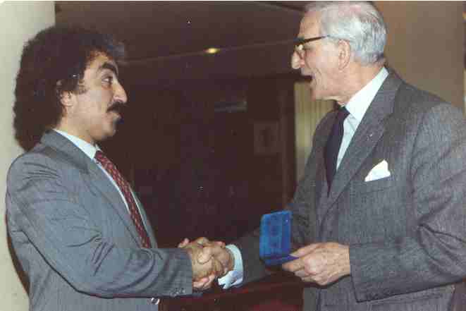 O.Atakan Tekin with Sir Arthur Gold ,EAA President, at the E.A.A. Congress held in Rome on November 1, 1986