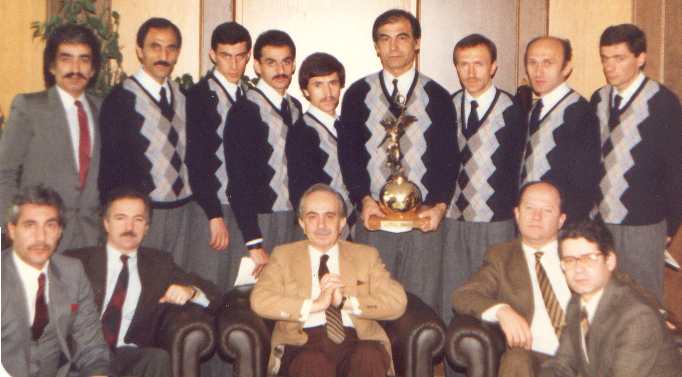 SISECAM Athletic Team members at the General Directorate in CAMHAN, Balmumcu with 3rd place cup of the European Champion Clubs Cross Country Championships (February 7,1987). SISECAM Athletic Team won the 3rd place cup among 25 European countries in Italy / Clusone on February 1st,1987