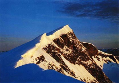 On top with the Full Moon This is the top of Glittertind, where I arrived on the full moon just before the galactic crossing, in August, 1999. It was a cloudless day, and one was able to "walk" right to the top without special equipment. Here was truly the 'Crystal in the Crown.' The crystals from the tip of this Nordic "receiver/broadcasting station" were received as the essence for supporting engrailed pineal activities, the transformer for the UnitySelf of AllOneness. |