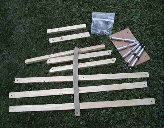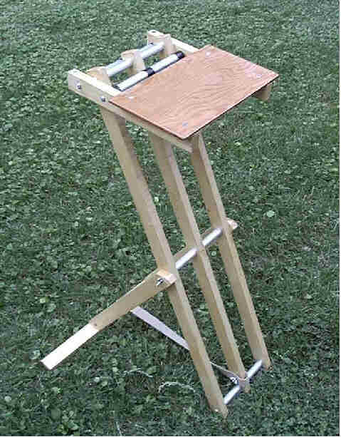 The central portion of the back also provides the attachment point for the back legs shown here. Wing nuts on 1/4-20 threaded rod attach the legs to the back. |