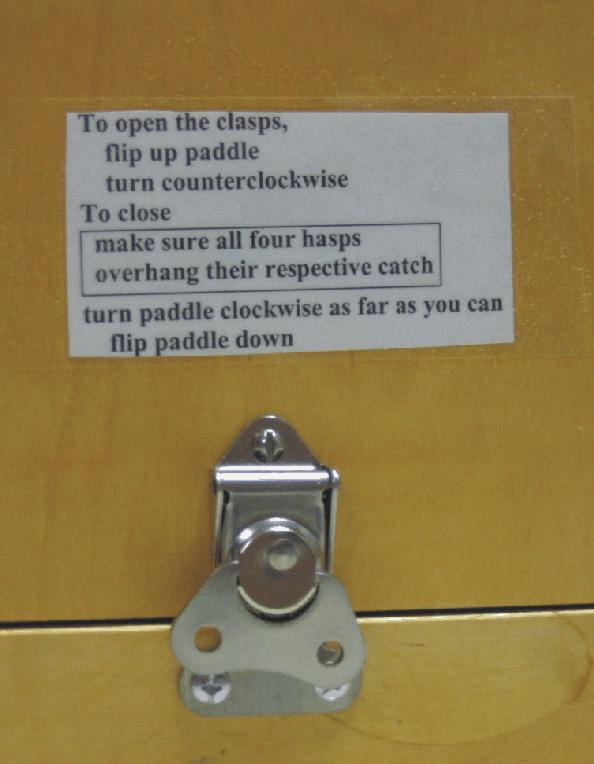 I also put on these catches on the scope box, replacing the aluminum plates that screwed on (necessitating the use of a screwdriver to open the box). For extra security I have a strap on this box as well as the truss tube box (not shown).