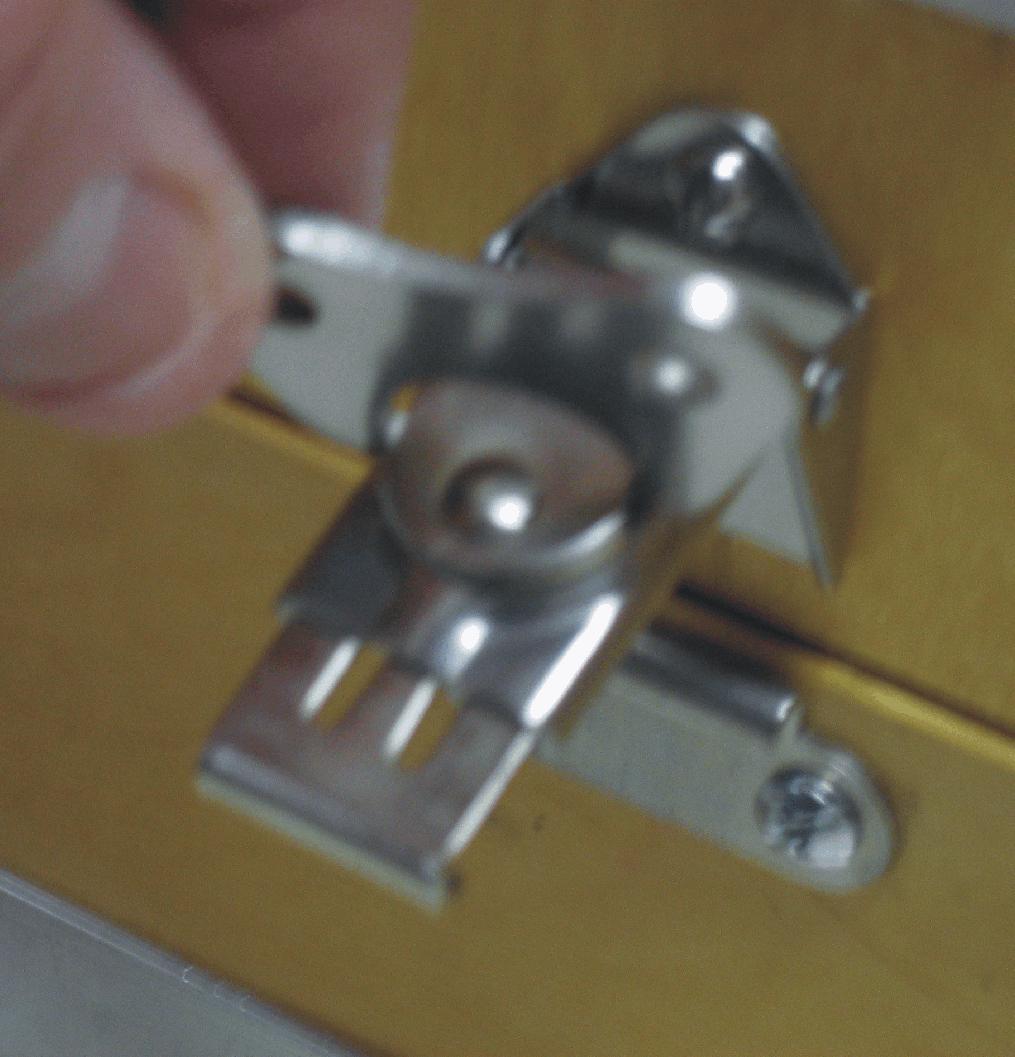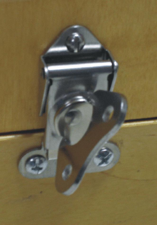 This box and the one below close securely with wing-turn catches from Nielsen Sessions (http://www.reliablehardware.com/). This is a