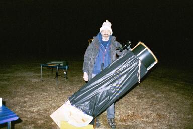 Don had arranged to set up one of his tents for me to use for the next four nights. I camped in the trees nearby a large (100-yard diameter), open field where most of the observing was done. Several telescopes were already to be found on this field and I unloaded my stuff into my tent and then drove back to the Mudgee airport to pick up my telescope, which I had been told would be on the afternoon flight from Sydney to Mudgee. Needless to say, it wasn't on the plane (due to being 2 pounds overweight) and, following my two-hour long harangue, Qantas agreed to drive it up by 7:00 am the next morning. As it was cloudy and due to stay that way that night, I agreed. The drive back to Wiruna was getting familiar. I checked out several of the very slick scopes set up that evening (pointing at the clouds). The most awesome was a beautiful 12.5" f/6.3 dob that was made from several complementary exotic woods. Additionally, it had custom, hand-casted aluminum bearings with artsy designs cast in. The overall workmanship was art museum quality and it later won the competition for best craftsmanship. I met several interesting and friendly Australian astronomers who included me in their groups and had a great night of drinking fine local wines.