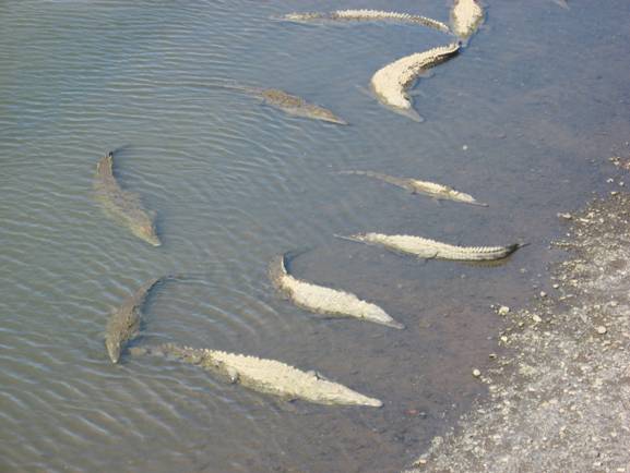 Every day we took day-trips to cloud forests or other touristy delights. We stopped the bus on a bridge one day to look over at the crocodiles.