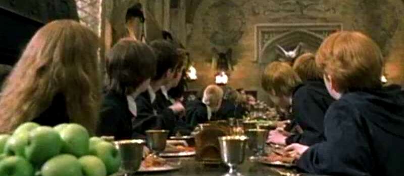 scene. Is that Draco Malfoy visible between Harry and Ron?