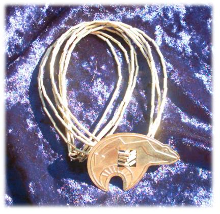 SILVER BEAR CONCHO STRAPPED IN A 4 STRAND LIQUIDE SILVER 18" CHOCKER