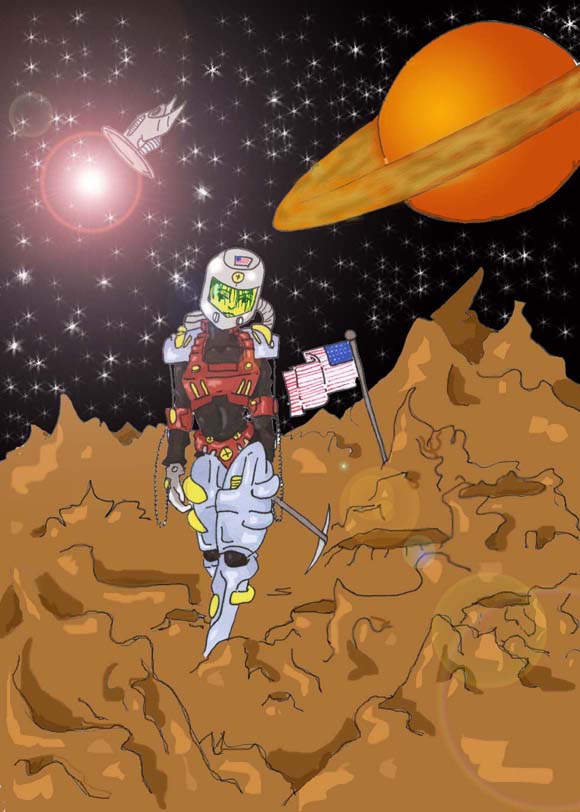 Against a beautiful backdrop like the Saturnian rings it's a humbling testimony to humanity. It makes me feel as if there is nothing the empire of humanity can't overcome.