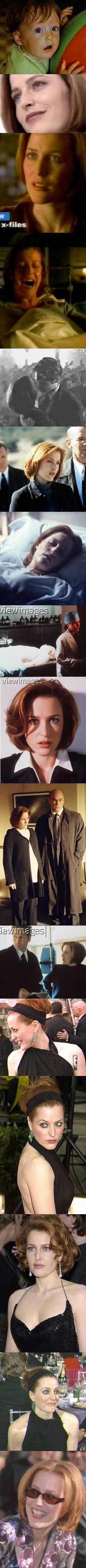 Gillian Anderson, like most people, started her journey by being born in a hospital on August 9, 1968 in Cook County, Chicago. Gillian and her family headed south to the sunny beaches and hurricane-prone island of Puerto Rico because he father had gotten a job down there. After successfully avoiding a major hurricane, surviving the heat/humidity and possibly even picking up a few good dirty words in Spanish along the way, the Andersons moved to London, England. Gillian spent the next nine years in England before returning to the States and for some unknown reason choose Grand Rapids, Michigan to call home. She did come back after all with a cool accent and not to mention a taste for punk music. Hey, that stuff has a way of growing on you; one day you're normal, then you put on a Sex Pistol's CD and BAM! you get a nose ring, wear combat boots, dye your hair many different colors, and walk around giving people the finger. In Grand Rapids, Gillian attended City High School, graduating in 1986, and like most American youth from her generation had absolutely no clue what to do with her life. Although she did say something about wanting to become something that's name ended with an "ology," i.e. Marine Biology, Archeology etc... It wasn't until after probably being really bored that she tried her hand at acting. Acting, in her own words, "saved her life," So began the long and winding road of her acting career. First stop? You guessed it, more school. Gillian returned to where it all began -- Chicago, but a much happier Chicago. In Chicago, Gillian studied acting at DePaul University's Goodman Theater and earned a Bachelor's degree in Fine Arts. Eventually someone (an agent, but not with the FBI) noticed that she indeed could act and offered to represent her, but she would have to move to New York. Well, thanks to Henry Ford and his invention, Gillian, at the ripe old age of 22, loaded up her car and made a bee-line straight for the Big Apple -- New York City, the city that never sleeps. In New York, Gillian was able to put all that education and training in acting to good use as a waitress. I think it's some kind of law Moses brought down from the mountain just for actors: Thou must wait on tables before becoming an actor (or in this case an actress, if you want to be politically correct). Gillian's first success came in 1991 when she won a Theater World Award in an off- Broadway play, 'Absent Friends.' Followed by more waiting on tables and a low budget feature 'The Turning' -- which is a now classic by the way, even though it isn't a very good movie, it's still a classic 'cause she's in it. Gillian did one more play, 'The Philanthropist,' before doing what most theater actors say they would never do, but do anyway -- she moved to LA (It's another one of those laws that Charlton Heston, I mean Moses, brought down from the mountain... only these start out with, "I will never do."). So the next step in the long and winding road was making an audio tape version of Anne Rice's novel Exit to Eden. Then it was time to break another one of those "I will never do" acting rules again. This time it was the "I will never do TV" one and Gillian promptly began doing auditions. After several auditions, Gillian landed her first TV role: a guest spot on a very, very, very short-lived series, "Class of 96." Shortly thereafter or sometime soon (I'm pretty sure it's a blur to her too), her last unemployment check arrived. But it didn't matter -- because karma works -- Gillian found out that she got a new job as Special Agent Dana Scully on a new TV show, "The X-Files." At first nobody noticed The X-Files except for people like me. The Fox Network slated a new show for their Friday night line up: The Adventures of Brisco County Jr. (which nobody watched, followed by The X-Files. Slowly, especially during the summer when it was rerun season and people were bored out of their minds (some even thinking about spending time with their families instead of watching TV), The X-Files started amassing a following. It started out as a cult hit -- that's what you call a show whose ratings suck but sells merchandise and has a huge internet following. The X-Files slowly made the jump from cult hit to mainstream TV when, after winning a Golden Globe for best drama series and being nominated for numerous other awards, America went on-line. Of course, two unknown actors got caught up in all this madness and became virtual Gods, I mean stars (okay, everyone get up and stop your groveling). Their names are already etched in sci-fi folklore -- see, Clyde Bruckman was right! Scully will never die. From here everybody knows the rest, but I will go ahead and write it anyway. After a very long courtship (a whole four months), Gillian flew to Hawaii and on the 17th hole (I think it was the 17th hole) of a golf course, she married Clyde Klotz. It was New Years Day (January 1, 1994) and the ceremony was performed by a Buddhist Monk. Clyde Klotz worked as an art director for The X-Files during the first season but now works as freelance artist. Ah, but what came next was the biggest and best surprise of all -- the real reason why Scully was abducted by aliens. On September 25, 1994, Gillian gave birth to her pride and joy (no, not a Stevie Ray Van song) Piper Maru. Piper is the light in Gillian's life, the apple of her eye, and also a permanent fixture in The X-Files studio. Yeah, and they hang her next to Chris Carter's surf board and David's red speedos! I bet she even looks forward to playing the "daughter of the flukeworm" role in a future episode someday. Gillian, Clyde, Piper, Cleo and any other pet or person they may have picked up along the way currently make their home in the forever rainy but lovely city of Vancouver, British Columbia. 1996 seems to be turning into a great year for the cast, crew and production staff of The X-Files. But the most important thing -- awards. Well, Gillian is finally getting them and that is all tha