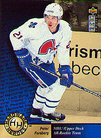 Peter Forsberg, the ultimate site, the Hockey Card section, in Swedish and Nordiques uniform