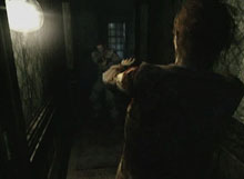 ![]() Chris Redfield returns in this Remake seen here struggling with a zombie. |