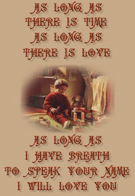 He was an energetic outgoing little boy who loved his Teddy whom will accompany him on his journey to heaven. He was Barney the Purple Dinosaurs’ biggest fan, and he had not yet been able to give up his souci, but my wife tells me that this was to be his New Years resolution. He treasured visits to his Grandparents houses and they knew he enriched them, as they him, with every visit. He loved the farm and the outdoors; which is why we have chosen to bury him, where his spirit can be free, out in the country.