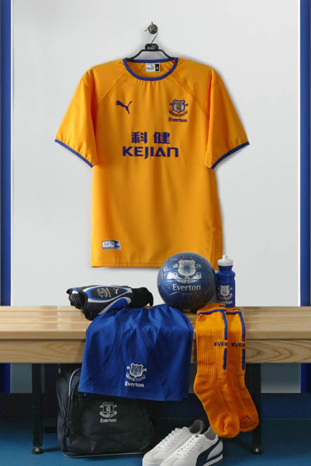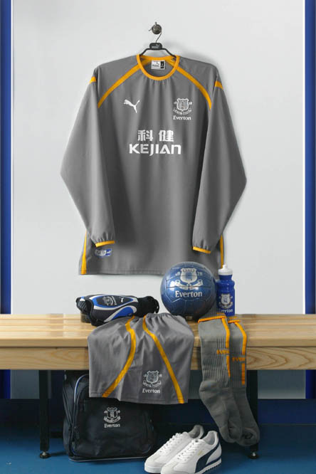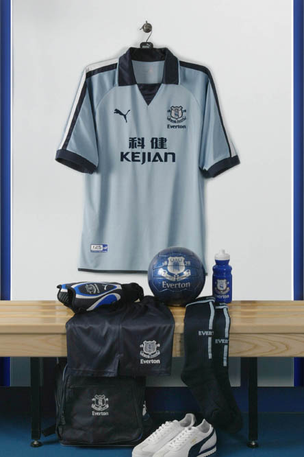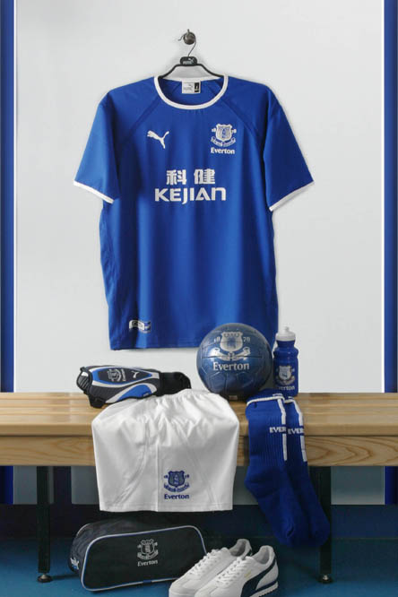 The home kit, designed by Puma and incorporating main sponsor's Kejian's logo, is in the registered Everton blue and reminiscent of the strip worn by Everton in 1966. The white ringer collar evokes memories of one of the Blues greatest ever games - the FA Cup Final win over Sheffield Wednesday