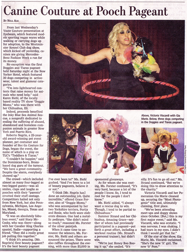 Eli in the Wall Street Journal article re the Doggies and Tiaras Pageant, 2/11/13