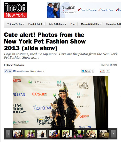 Eli in Time Out New York's Coverage of the New York Pet Fashion Show, 2/13