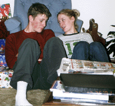 This is my cousin Michael and I at my grandparents house. We were celebrating Christmas. I had been telling Michael that we were going to have our picture taken when the photo was snapped. lol.