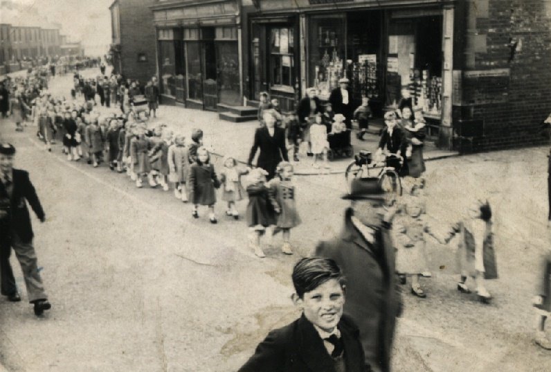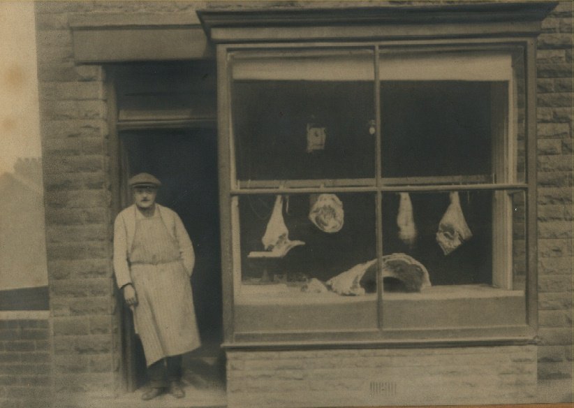 The butcher is J T Green,of 36 High Street. He died in 1926 and his son Allan Green took over and hawked meat in Grimethorpe until he died in 1986.