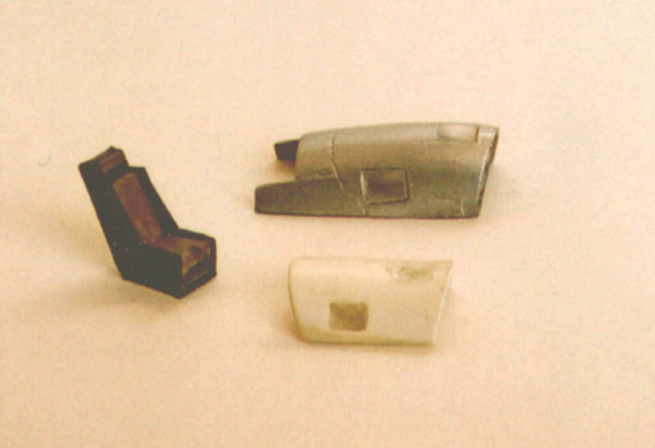 On the left the scratch built ejector seat, top centre is the original cockpit hood,