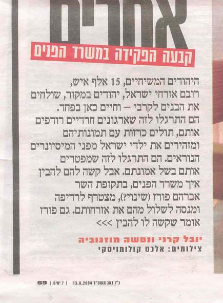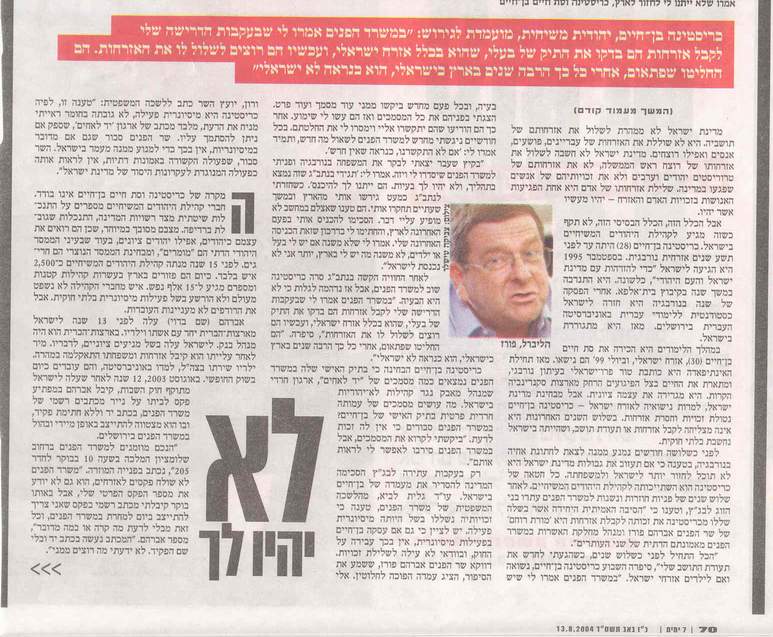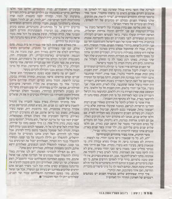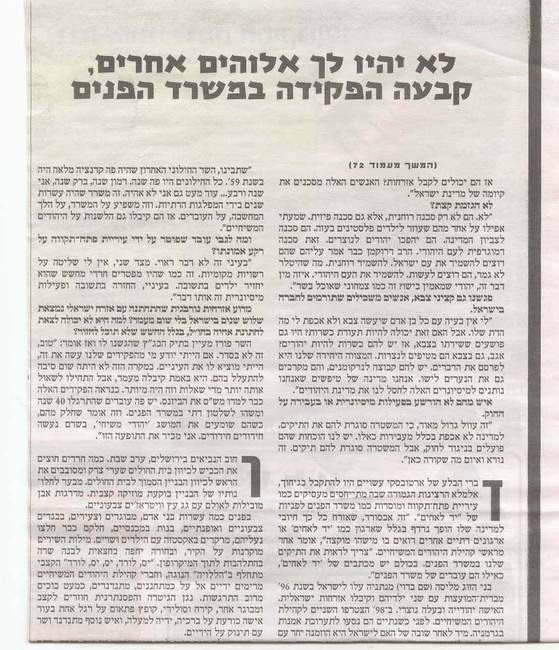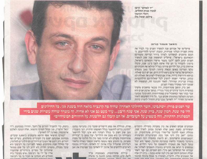 Article from Friday’s edition of the 'Yedidot Aharonot'; one of Israel’s largest newspapers.