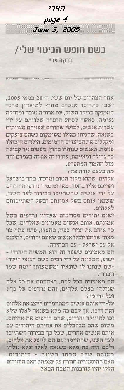 06/03/05: Rebeka's letter to the press / Hebrew! ... English Translation