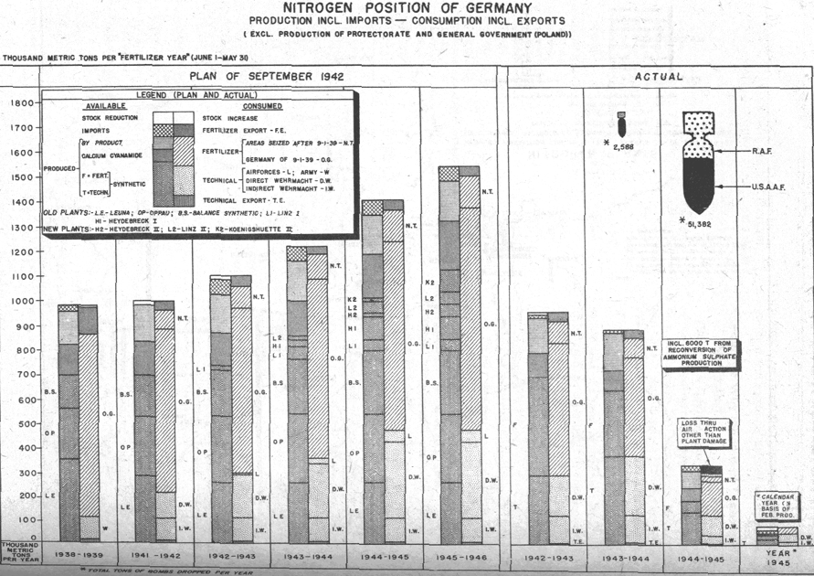 Figure 2 shows German plans of September, 1942, for nitrogen production and utilization during the war; for comparison, actual figures are shown for the period after 1 June 1942. This plan was revised in March, 1943.