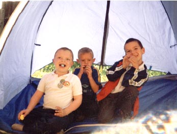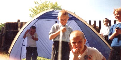 Here I am with my cousin's and my friend's, Bobby and Layton laughing because my mum pretended to take our photograph but it was really a water pistol in disguise.