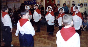 Here we are on March 1st which is the day we celebrate St David, the patron saint of Wales. We dress up in the Welsh national costume and sing traditional songs and have a competition called an "eisteddfod".