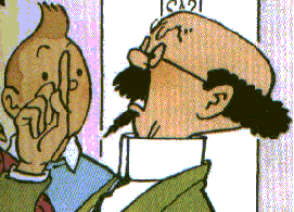 TINTIN 1. Abdullah sprays him (what a brat!) 2. Gets in a plane crash 3. Is knocked down by the blast of the plane explosion 4. He trips 5. Runs into Captain Haddock (hey, Captain gets hurt in this one too) 6. Falls, thanks to Professor Calculus (not to be pointing fingers) TOTAL MISHAPS: 6, only! That maybe Tintin's all time lowest record!