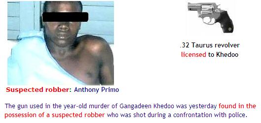 Diamond businessman's murder Wife, daughter placed on bail - report on case to be sent to DPP Police were yesterday preparing to release the wife and daughter of slain Diamond Housing Scheme businessman Gangadin Khedoo. Sources said that the two are to be released on station bail. However, a sister of the murdered man who spoke to Kaieteur News last night said that Khedoo's wife and daughter had not been released. Police are also preparing to send a report on the case to the offices of the Director of Public Prosecution (DPP). The two women have been in custody since Sunday. On Monday, detectives checked the women for possible traces of gunpowder residue. They are still to get the test results. Both women have vehemently denied having any involvement in Khedoo's death. They alleged that he was slain by bandits who entered the family's home. According to the women, Khedoo, of Lot 502 Block ‘X', Diamond, was shot dead with his own gun by two bandits who had gained entry to his home. The bandits reportedly fled with Khedoo's licensed revolver, $300,000, four cell phones and the slain man's car keys, after beating and tying the daughter with duct-tape. An autopsy revealed that the bullet punctured his heart and lung, before lodging in his back.