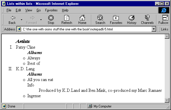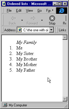 That is the most basic example of a list and it is displayed in Internet Explorer 4 as: Explorer View 6.1 - click on the