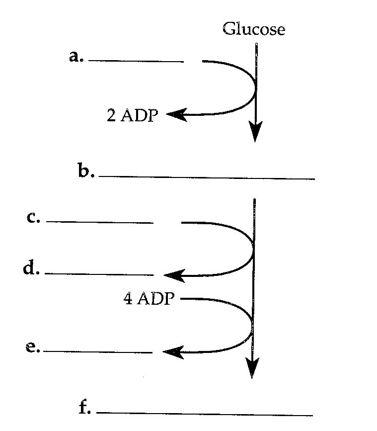Word Bank: 2 pyruvate, 4 ATP, 2NAD+, 2ATP, 2 glyceraldehyde,