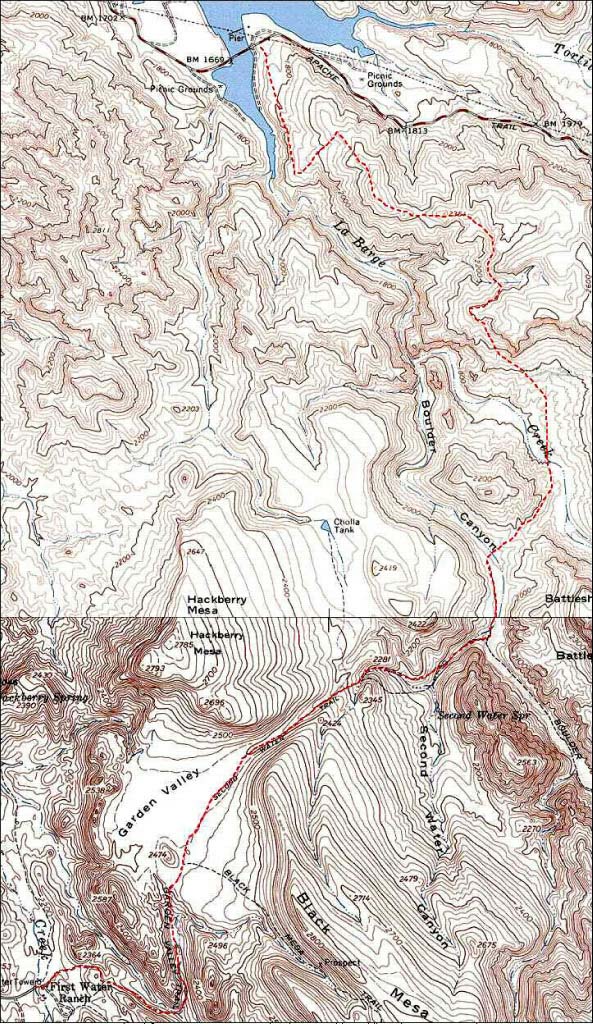 Trail map for First Water to Canyon Lake. Click on map for larger image. Use the back button on your browser to return to this page.