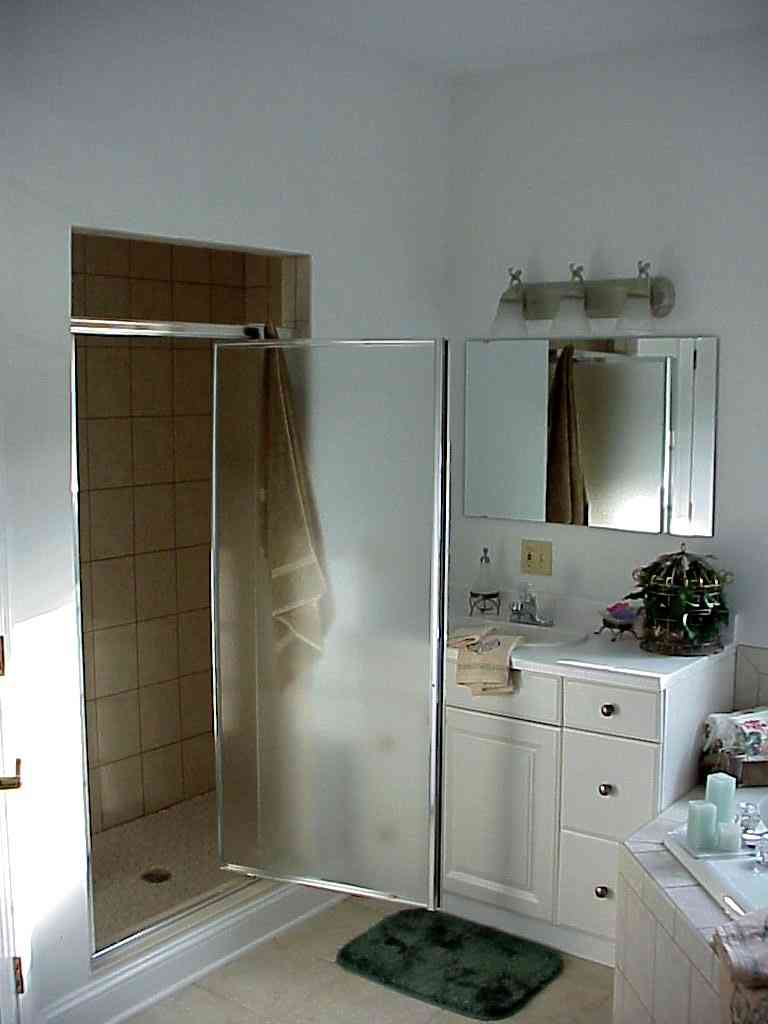 tub, a large 3 x 5 foot tile shower and
