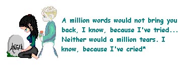 I couldn't answer. I couldn't think. I couldn't move, I couldn't blink. How I'm still here today is a mystery because I couldn't breath. Something inside me died. I got up and went to my brothers room to tell him what had happened. I opened my mouth to talk and I just started to sob. Choking on my tears I went to my room. That was a mistake. Everywhere I turned, there was a poster of George. Being the only die-hard Beatles fan I know, I stopped crying and put on a happy face. I had to deal with the terrors of school. Why really made me mad was when I would tell people the news and they would say 'oh' and go back to their lives.