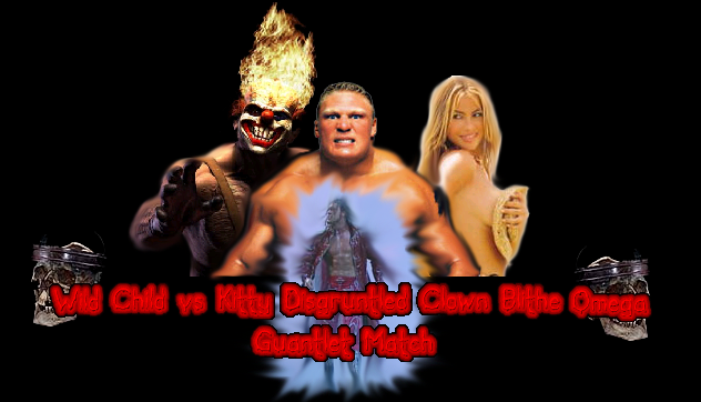 Blithe throws the mic down and starts to laugh as Disgruntled Clown and Kitty enter in the ring to stand over top of the fallen Wild Child.