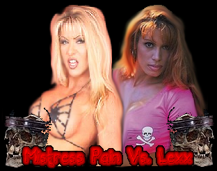 Lexx taunts her to get up. Mistress tries to climb to her feet,but Lexx slams her right back down with a big boot to her stomach. Mistress rolls over holding her stomach. Lexx grabs Mistress by her hair pulling her to her feet. Lexx goes for a kick to the face,but Mistress catches her foot in mid air throwing Lexx off her game quickly.