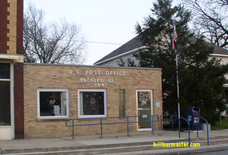![]() | Buckley, IL 60918 Post Office Location: 116 North Railroad Avenue; Buckley, IL Year Post Office built: Town(s) Served: Buckley Acceptable City Names: Buckley Not Acceptable City Names: Sectional Service Facility: Kankakee County(ies): Ford, Iroquois Info on Buckley: The Village of Buckley is a small town along U.S. 45, and the Canadian National Railroad. As of the 2000 census this village had about 593 residents. |