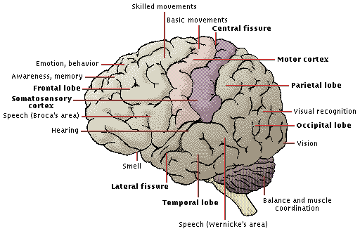 The part of the nervous system that is found in the skull is called the Brain. The brain is approximately three pounds and made up of pinkish-grey jellylike tissue which is made up of one hundred billion nerve cells or neurons. The brain controls movement, sleep, hunger and thirst. The brain also controls emotions like love, hate, fear, anger and sadness. The brain receives and interprets other signals that are sent from other parts of the body and the external environment.