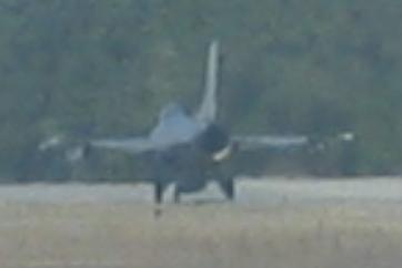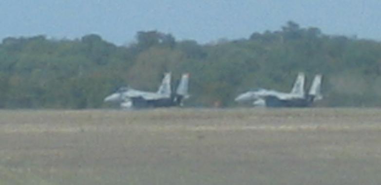 Two F-15's waiting for us to get off of the runway so they can take-off.