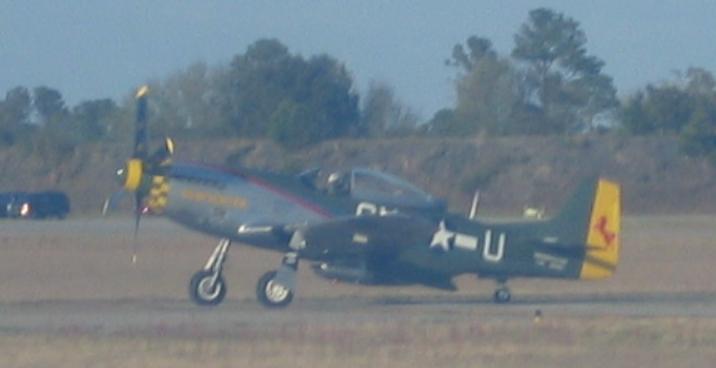 A P-51 mustang getting ready to take off from Eglin to practice for the up coming airshow.