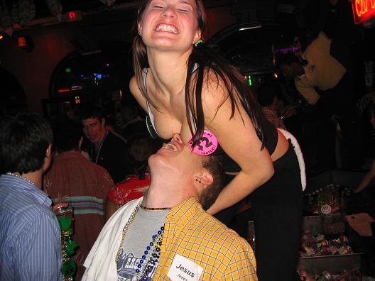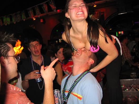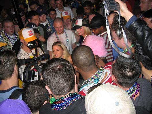 A girl getting ready to ummm....expose herself, yeah the camera went off on accident. The guy with the big camera and light blue shirt is from girls gone wild, I am sure you've heard of that.