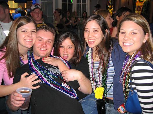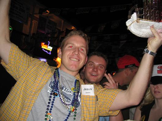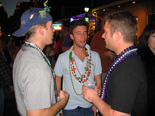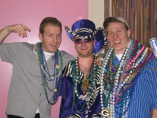 Sean with his crazy mardi gras glasses, Shaw's buddy with his ever popular fishy beads and Ryan wondering why Shaw's buddy looks so messed up (left to right).