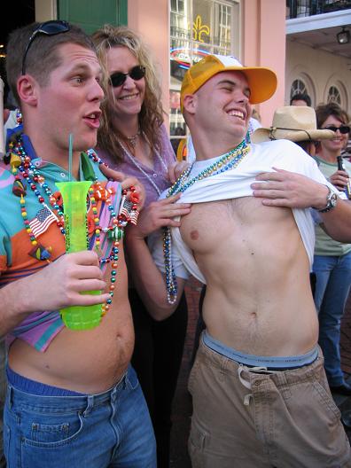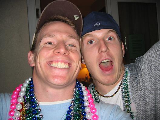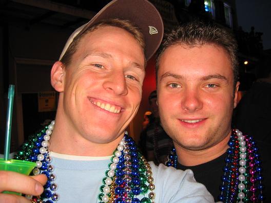 Me and Ryan roaming the streets looking for someone worthy of the beads.