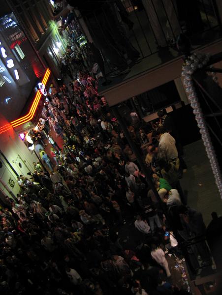 A shot from the balcony, the masses of people to the right.