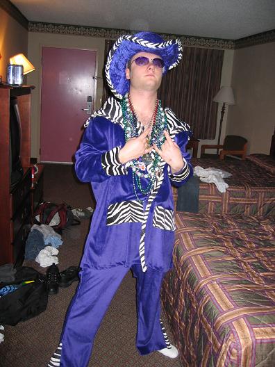 Ryan in his pimp outfit ready to head back out for saturday night.