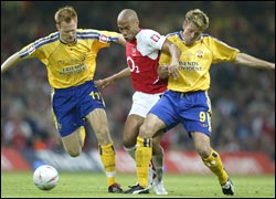 Arsenal are one of the taller teams in the Premiership but, Vieira and Sol Campbell excepted, that isn't reflected in their aerial ability. Though Kolo Toure competes, Henry, Bergkamp, Pires and Kanu, all over six foot tall, don't win as many defensive headers as they should. Celta Vigo scored twice from set-pieces last week and the aerial threat of James Scowcroft created Leicester an equaliser in a game when Wenger admitted corner and free kicks troubled his side. His decision to bring on Pascal Cygan in Arsenal's last two games indicated a weakness against crosses. Set pieces should offer the best opportunity to exploit that - especially if their target is not being marked by Vieira or Campbell.