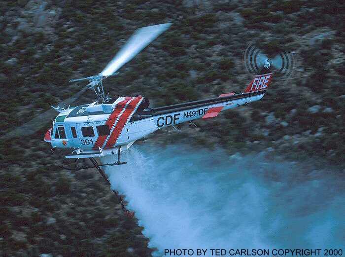 Welcome to the CDF Hemet Ryan Helitack Page. The Hemet air program consists of initial attack aircraft for wildland firefighting purpose. Hemet Ryan is equipped with 1 Bell UH-1H A++ Super Huey that flies with a ground crew followed by water drops from the Helicopter..1 Air Attack-OV-10 Bronco and 2 S2T Gruman 1200 gal.cap. Air Tankers Please visit our links and photographs